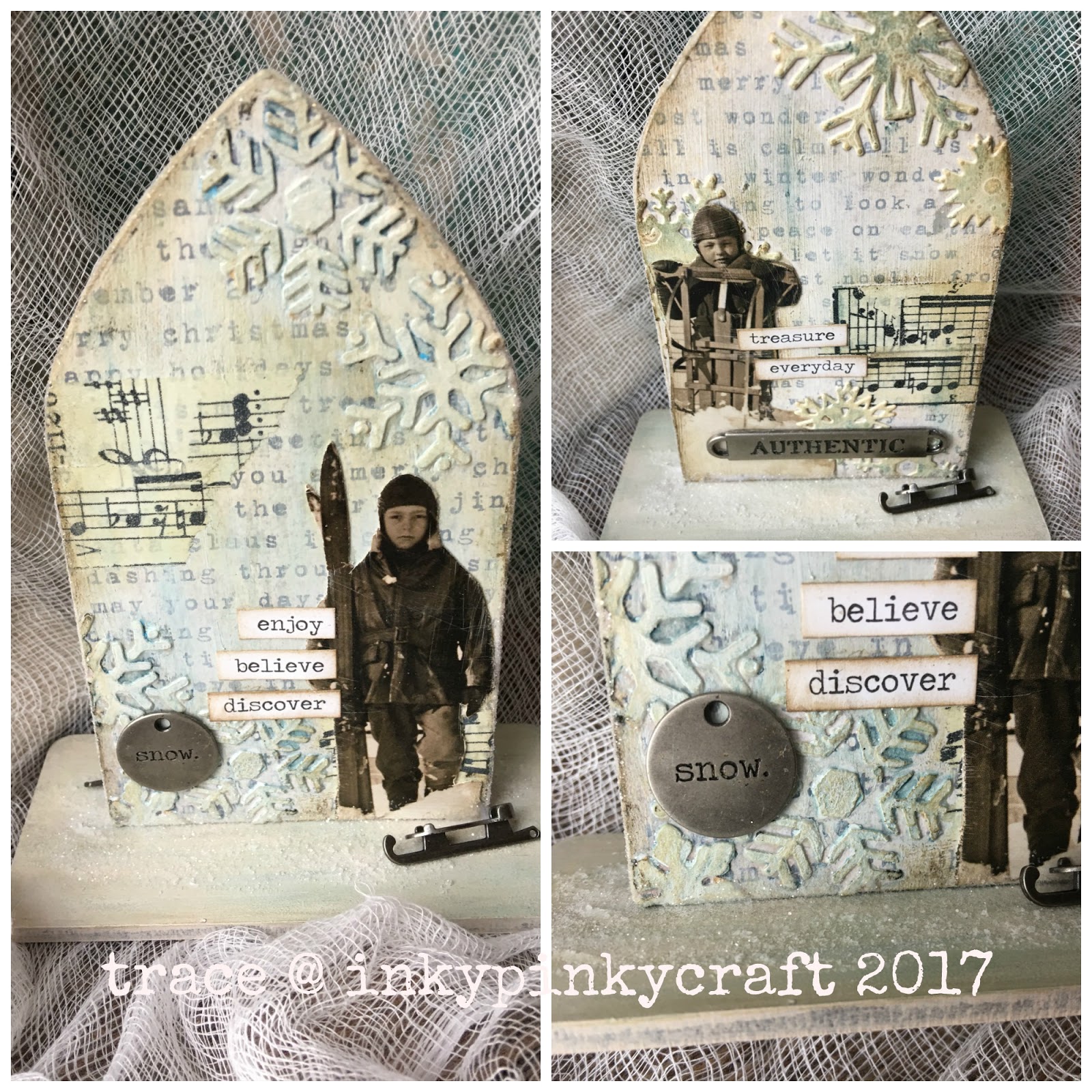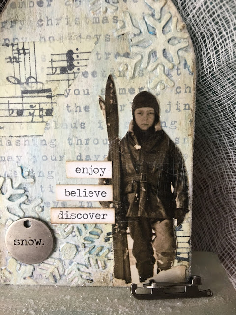 13. Great wintry layers on this free-standing plaque. Love those letters in the background, and the brilliant use of the snowy boys amidst the textured snowflakes. Love it all!