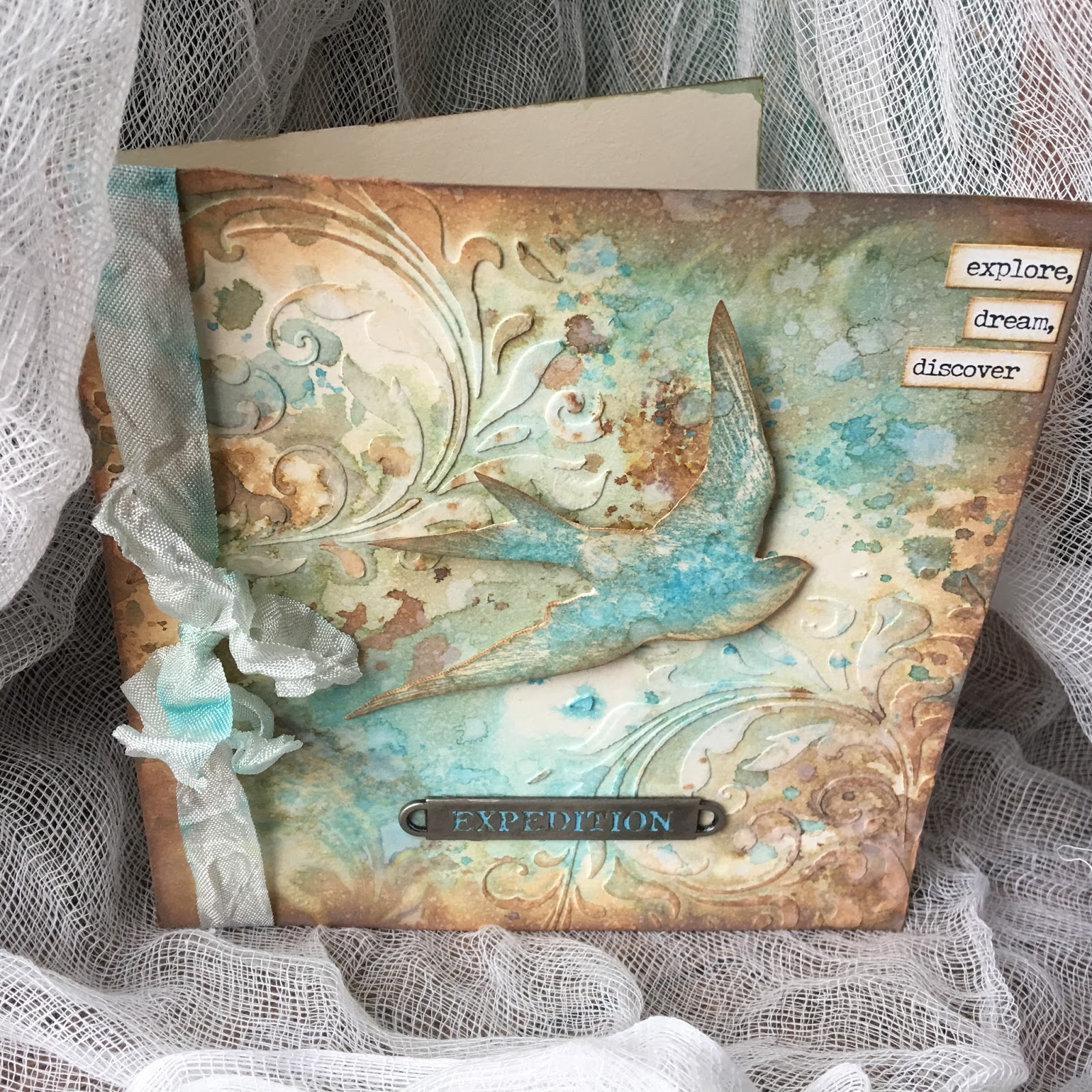 Well like lots of others I have been eagerly waiting to get my inky paws on the new distress oxides from the one and only crafty master , Tim Holtz. So have been playing with some backgrounds (which I will share later ) - and now here is a finished piece .