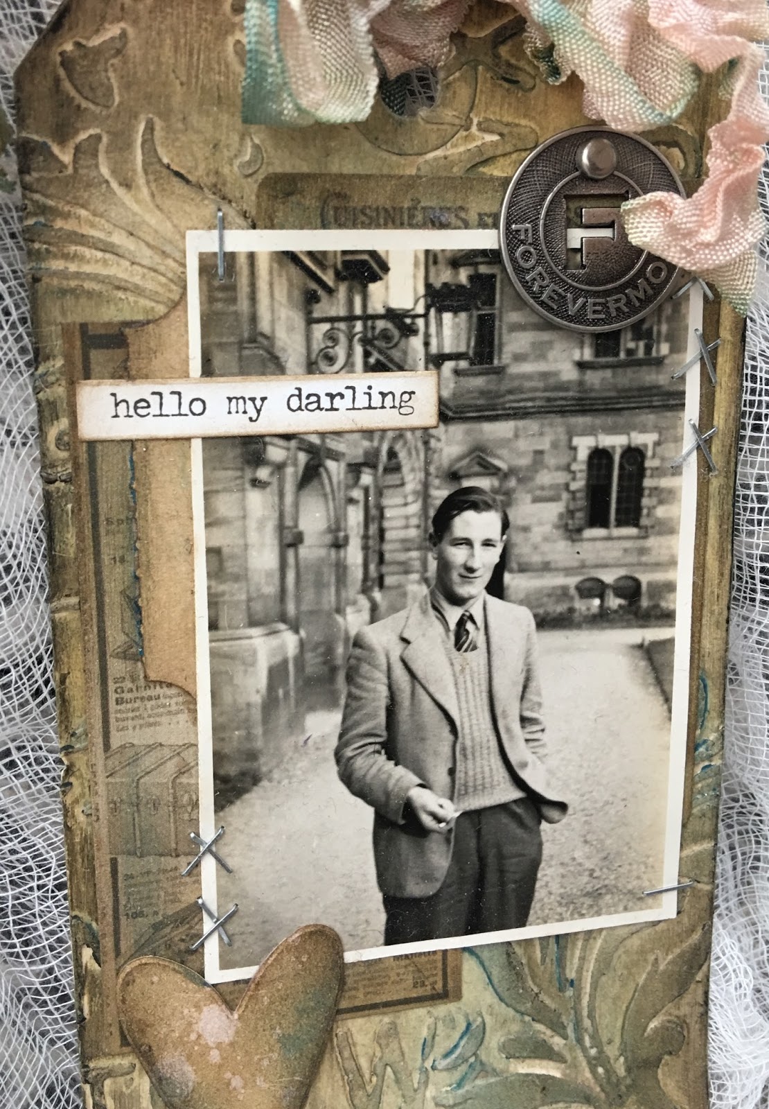 So it has been a while but here is a tag I created using one of my vintage photos, texture paste and also plenty of distress crayons.