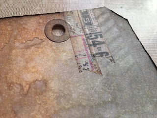 I then placed a stencil on - Tim Holtz chevron 024 and applied some water through using blending foam which removes some of the colour and dried and added some journey and vintage tape from the new sets ...