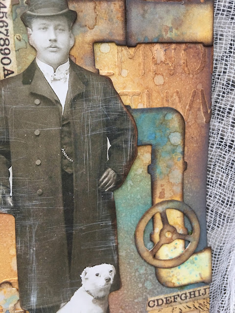 Now for the gent himself, I sanded the edges  and the image a little as I like the feel it gives ...and added a little ink around the edges..