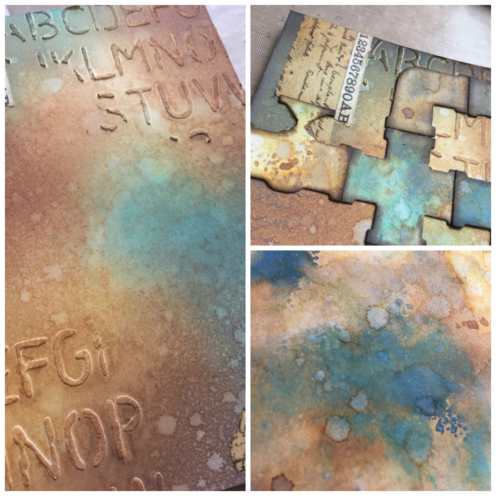 .then spritzed card with water and dried to let the magic of the oxides happen..